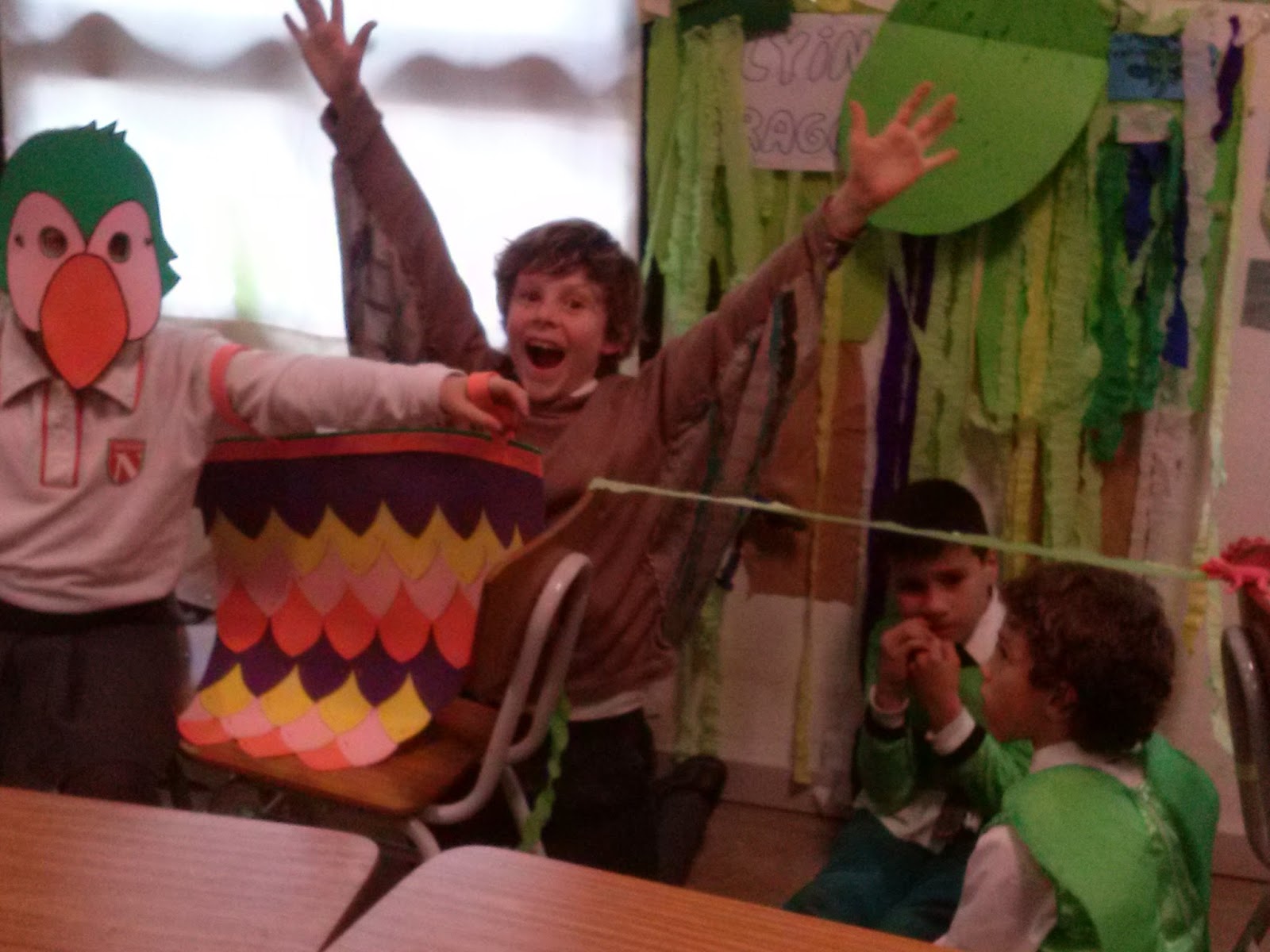 While studying the habitats, we decided to turn our classroom into a Rainforest, and have a presentation about it. We set our minds into it, and worked REALLY hard: