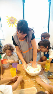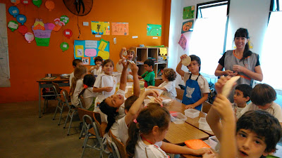 En Inglés estuvimos aprendiendo sobre la comida. Hicimos un chart donde los chicos registraron que comían cada día, buscando el vocabulario que les faltaba. Como parte del proyecto, elegimos recetas y cocinamos juntos. ¡¡¡Salió riquísimo!!!!